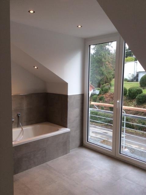- Ausstattung des Bades Dusche, Badewanne, Fenster